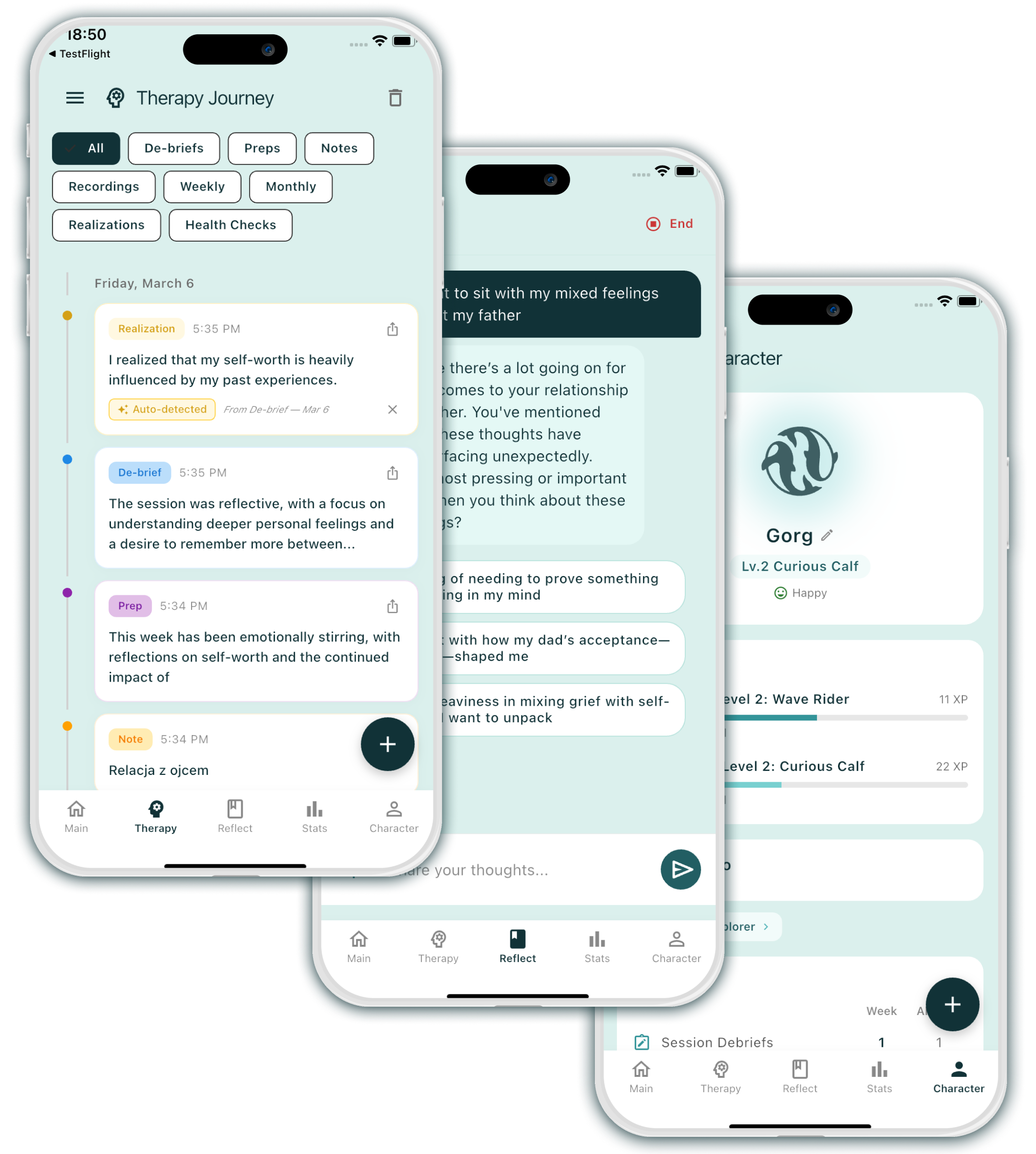 You can still use MindSync to work on mental health. Talk through your insecurities, explore patterns, and prepare with insights from the AI. When you're ready to find a therapist, you'll have valuable data to share
